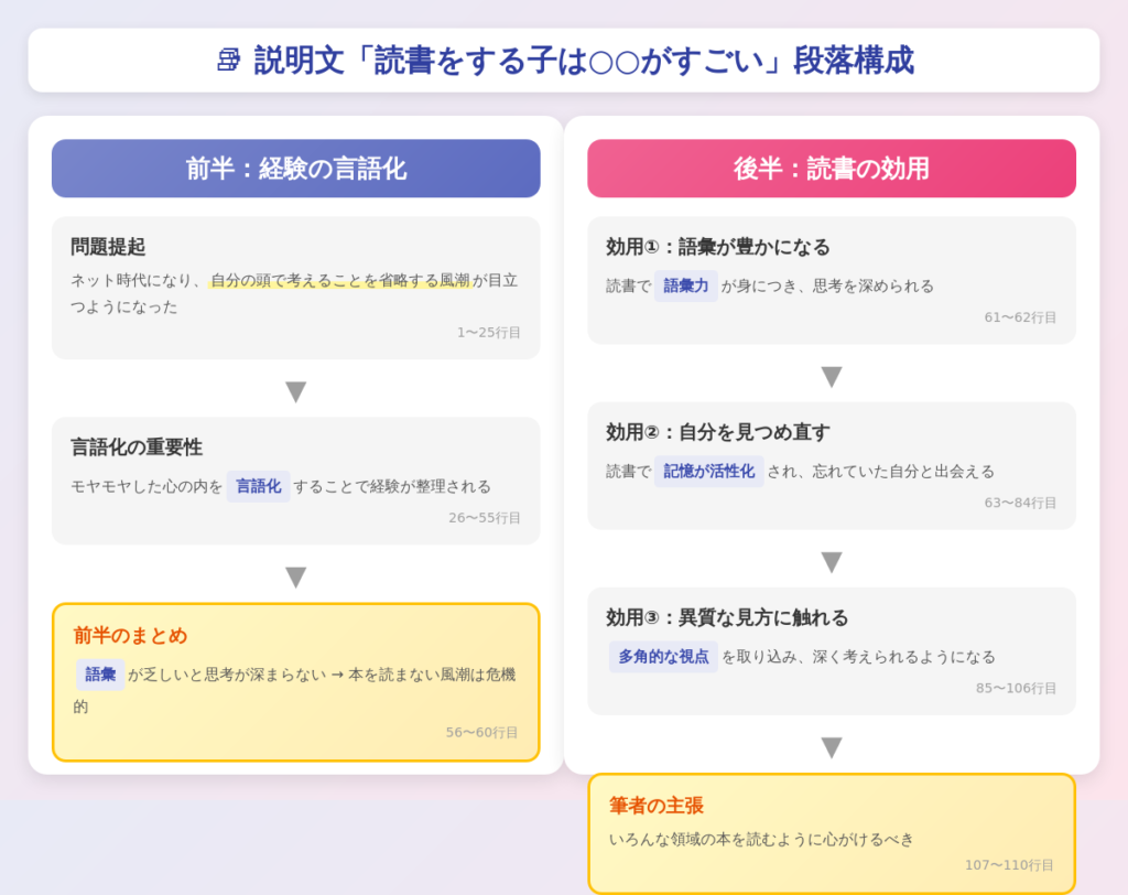 この文章は大きく「前半」と「後半」に分けられます。