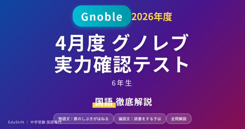 Gnoble(グノーブル)6年生4月度GnoRev実力確認テストの国語を解説します。今回の読解は、物語文が工業高校機械科で唯一の女子が旋盤加工にのめり込んでいく青春小説、論説文が「読書と思考力」をテーマにした現代的論説文という組み合わせでした。どちらも 6年生前期の到達度を測るには最適 な素材で、心情読解・対比把握・語彙力のすべてが問われる良問セットです。