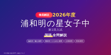 今回は2026年度 浦和明の星女子中学校 第1回入試の国語を徹底解説します。本年度の出題は大問二題構成…