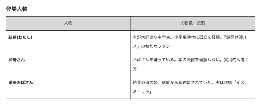 結芽は遺品整理中、おばさんが自分の愛読書『鍵開け師ユメ』シリーズの作者「イズミ・リラ」だったことを発見する。